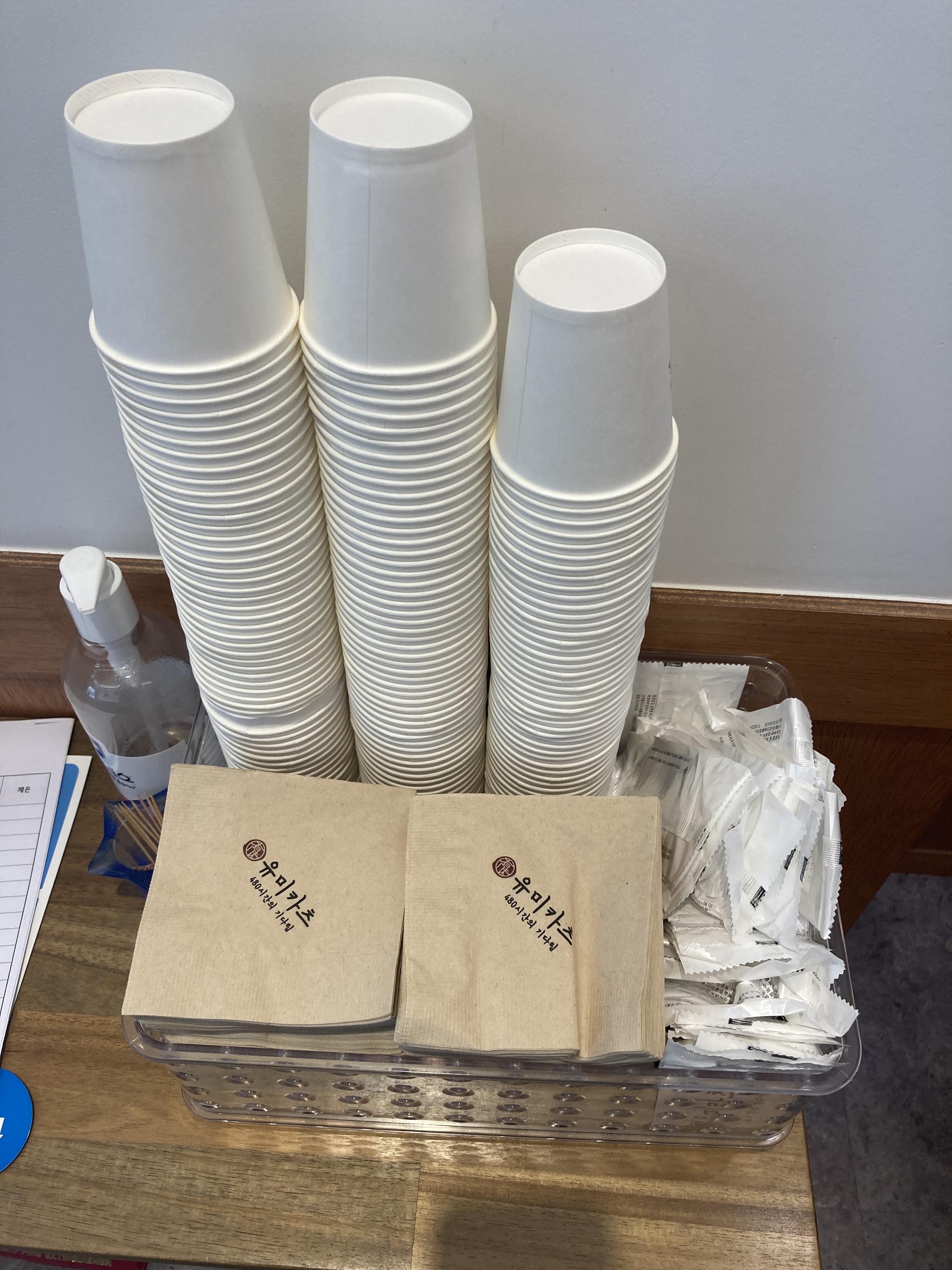 컵과 티슈, 그리고 소독제!