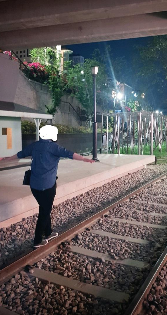 철길에 수평 잡고 사진 찍기