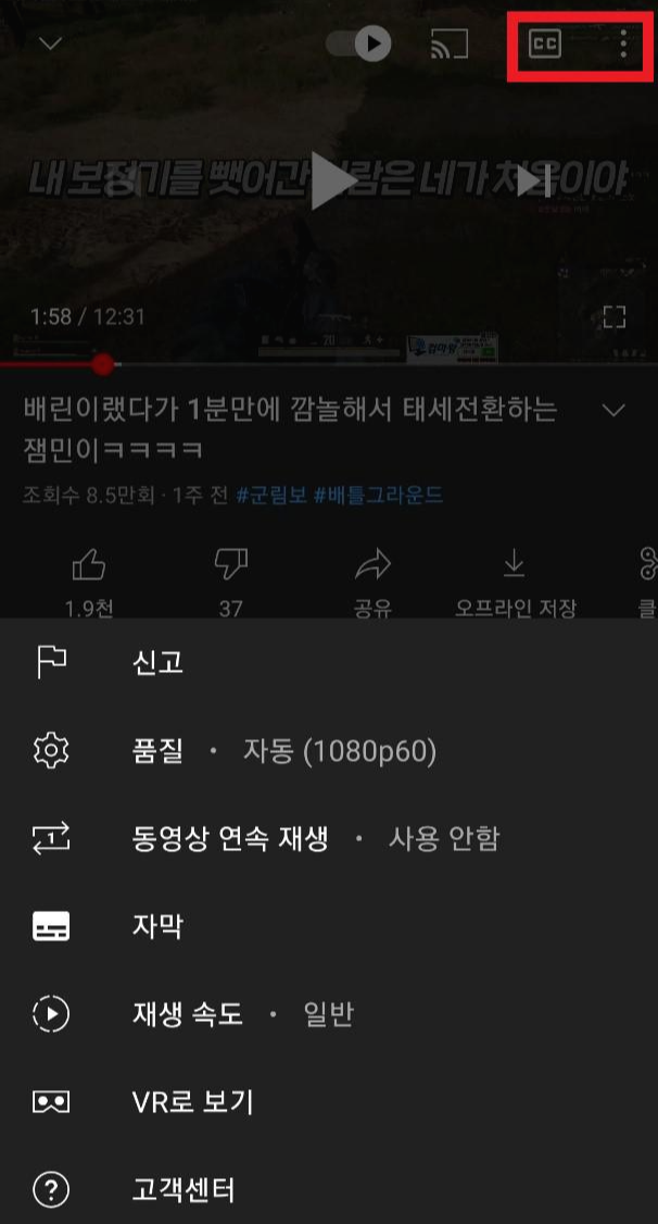 품질(화질)/자막/재생속도(말하는 속도) 등
