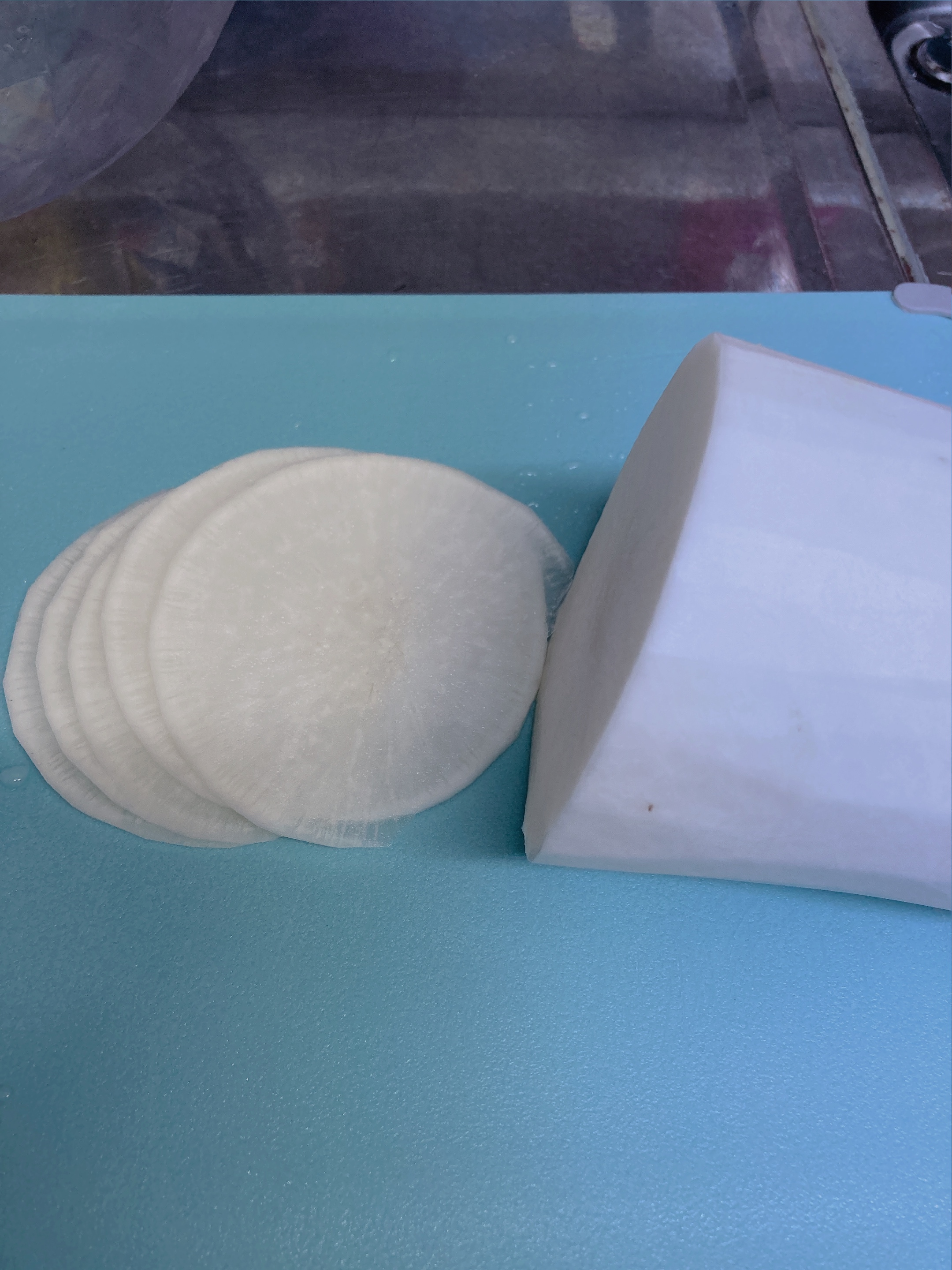 껍질을 깨끗하게 벗긴 무우는