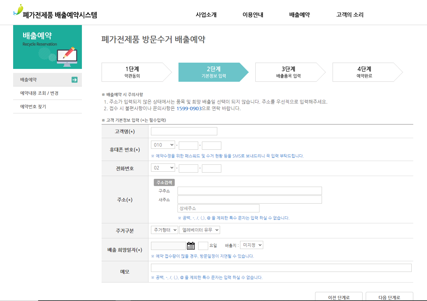 폐가전 방문수거 배출예약시스템