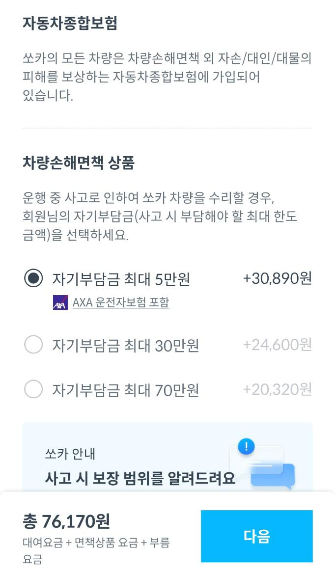 쏘카에서는 자기 부담금