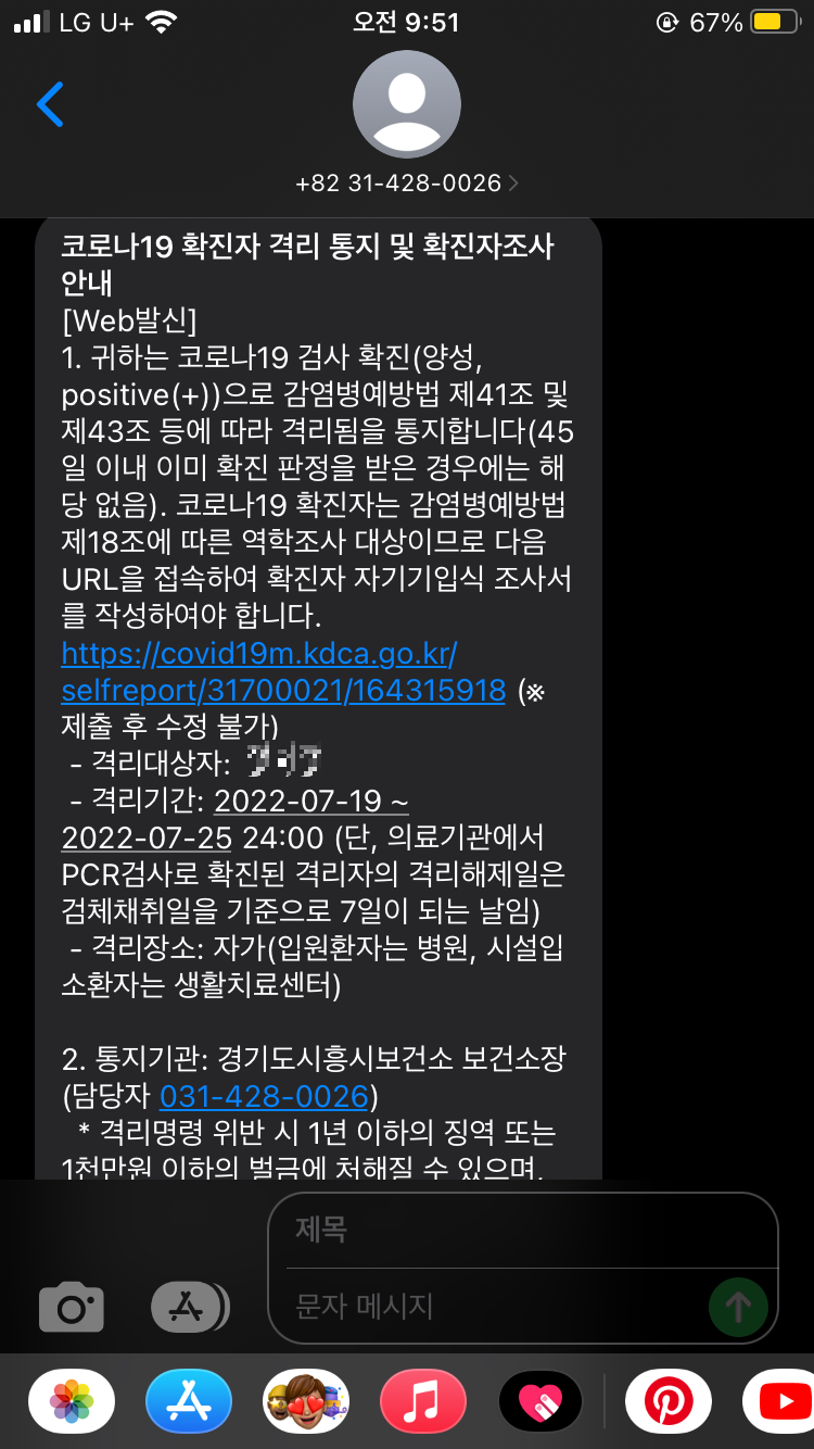 결국은 이렇게 확진이 되었답니다ㅠ