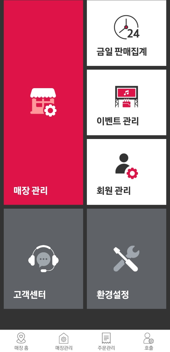 여러 가지 기능(호출, 상품관리, 이벤트) &