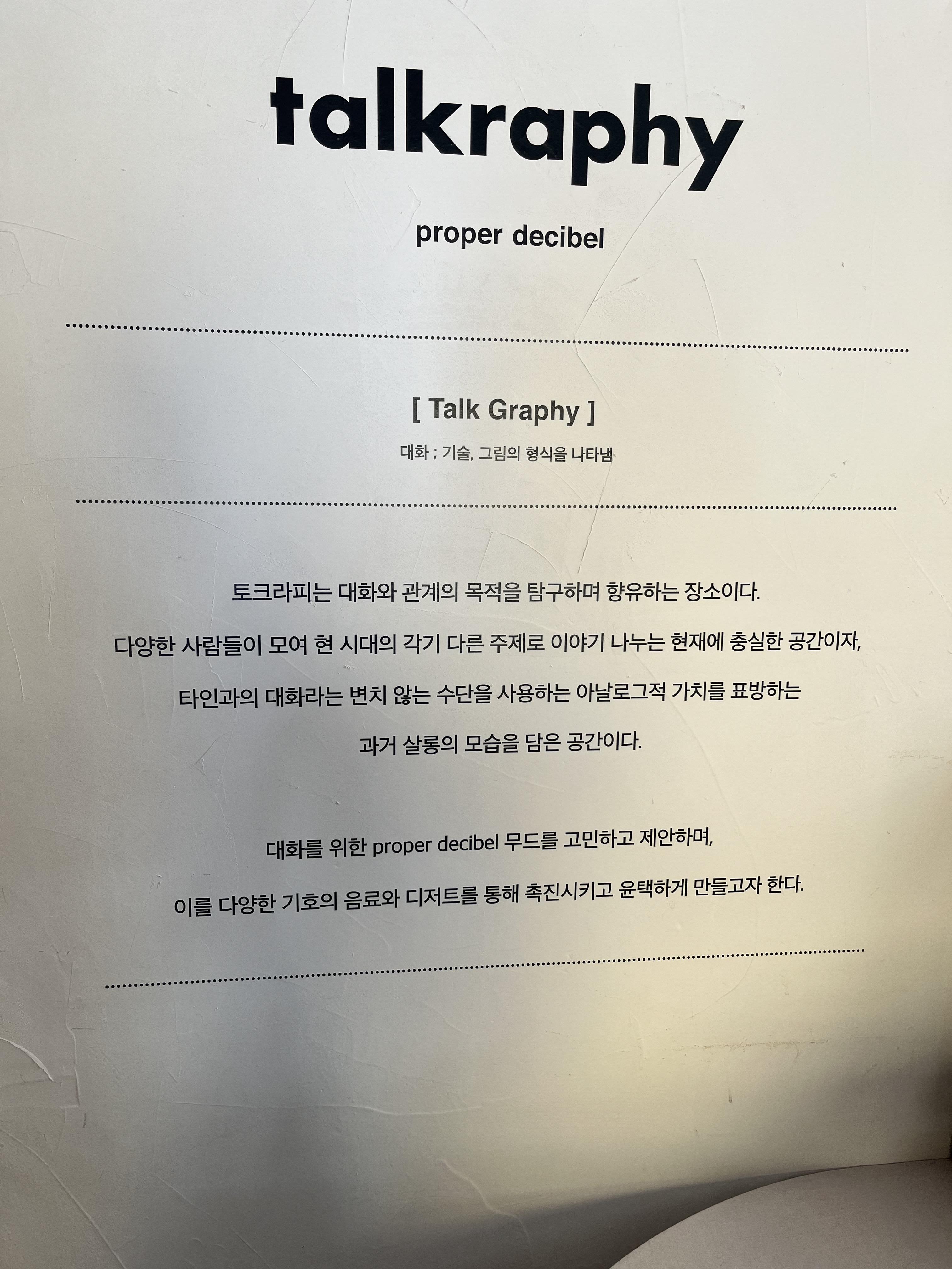 매장 이름이 토크라피 라는 것을 듣고