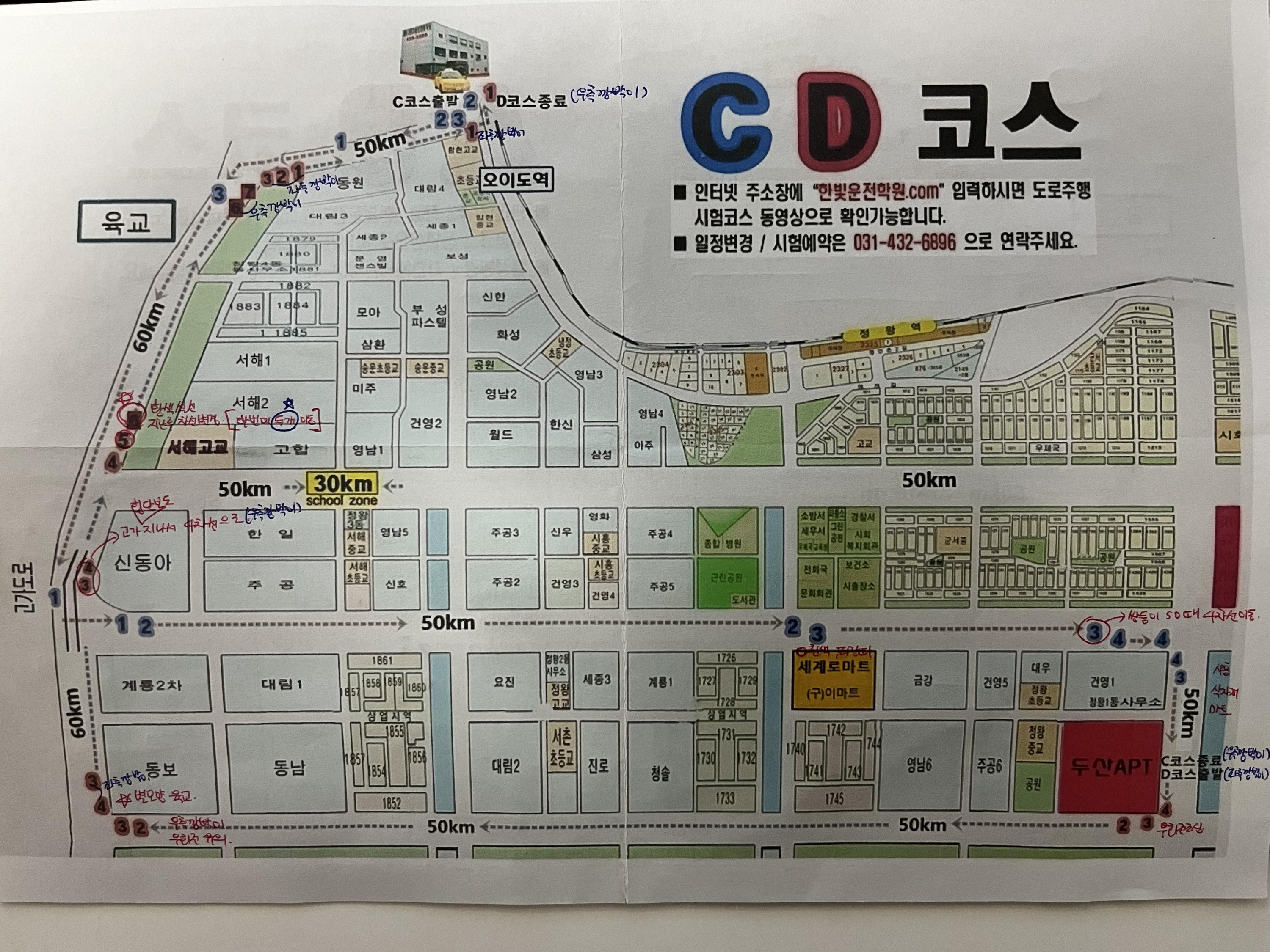 학원까지 가는 코스로 시험을 보셨다고 해요.(합격)