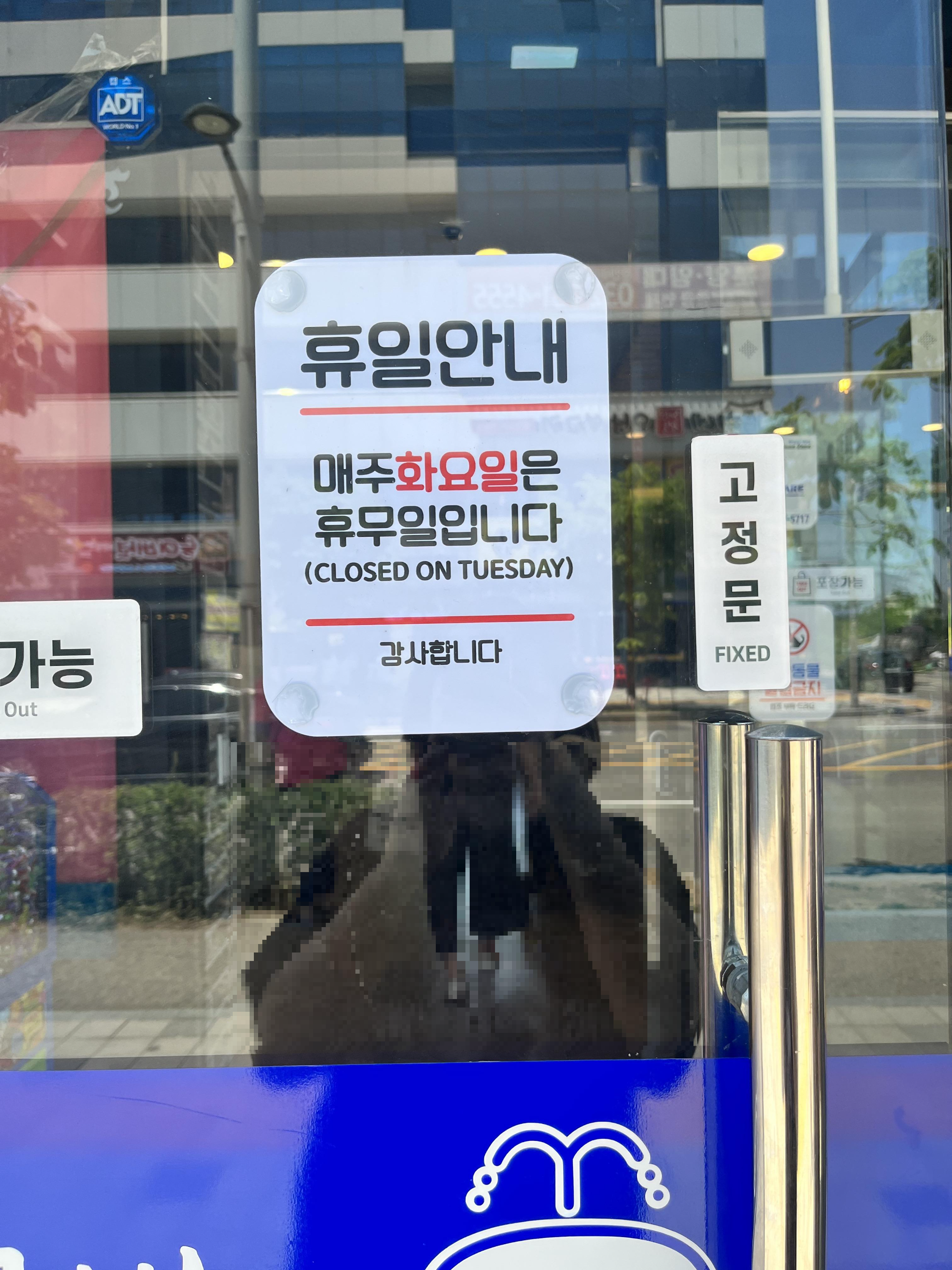 화요일은 휴무날이라고 해요!