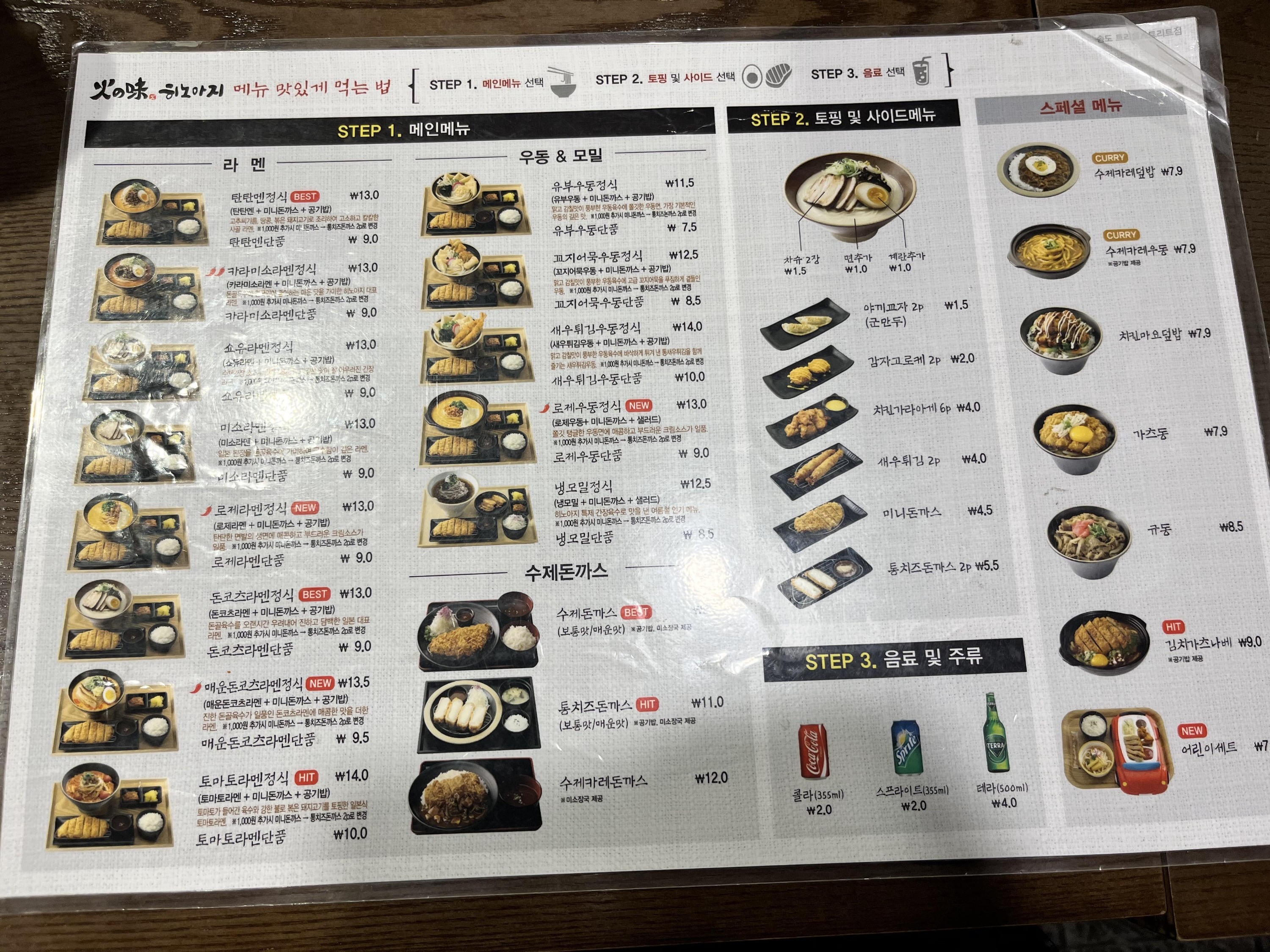 라멘, 우동&모밀, 수제 돈가스.