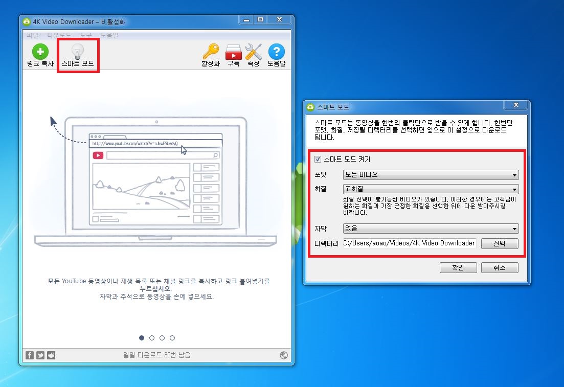 원하시는 포맷이나 화질로 다운받으면 돼요.