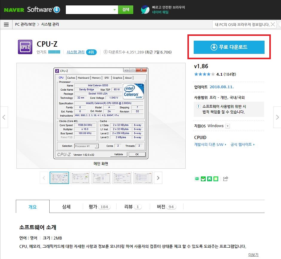 인터넷 검색창에 CPU-Z 검색하셔서